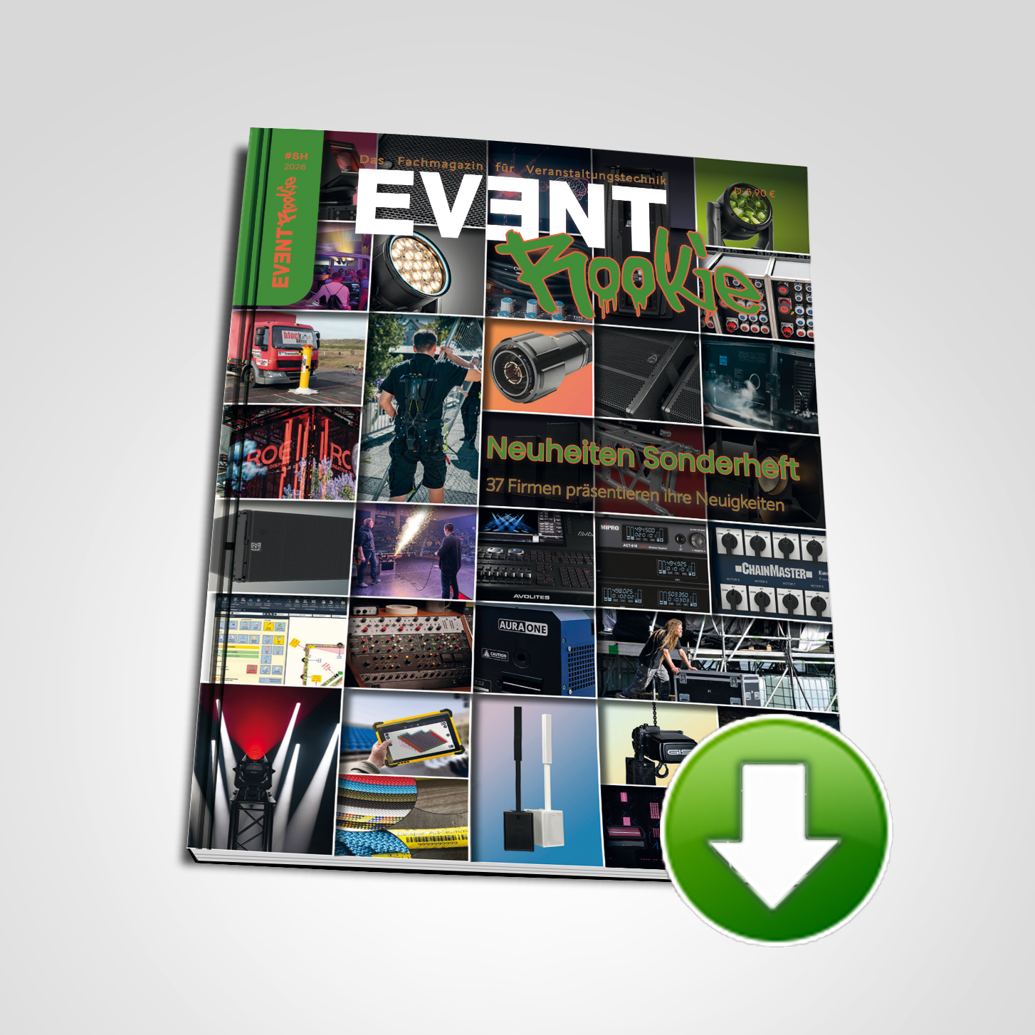 Mit unserem Neuheiten-Sonderheft wollen wir euch Neuheiten aus der Welt der Veranstaltungstechnik präsentieren. Diese Neuheiten findet ihr in einer umfangreichen News-Sektion und darüber hinaus bietet es die besten Reportagen des Vorjahres. Im Vorfeld konnte man sich die Ausgabe in gedruckter Form kostenfrei bestellen. Wer dies verpasst hat, soll dennoch die Möglichkeit haben die Ausgabe in Ruhe zu lesen. Daher bieten wir das Produkt kostenfrei zum Download an. Viel Spaß beim Lesen dieses EVENT Rookie Sonderhefts.